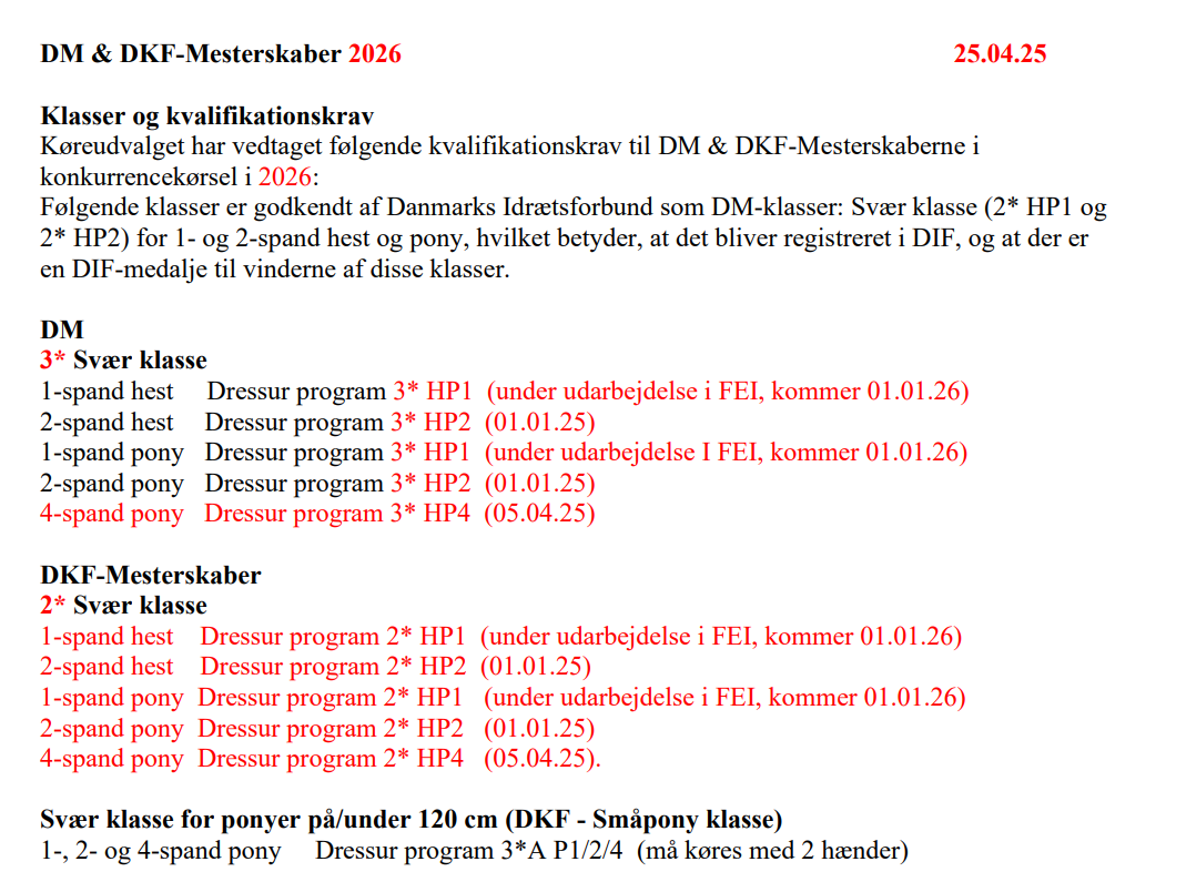 DM og DKF Mesterskaberne 2026 afholdes af Slesvigske Køre Selskab på Revsø Rideskole, Revsø Markvej 2, 6560 Sommersted, fra den 23. - 26. juli.