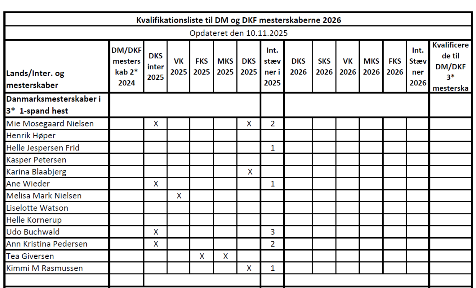 Kvalifikationslister til mesterskaber DM - EM - VM