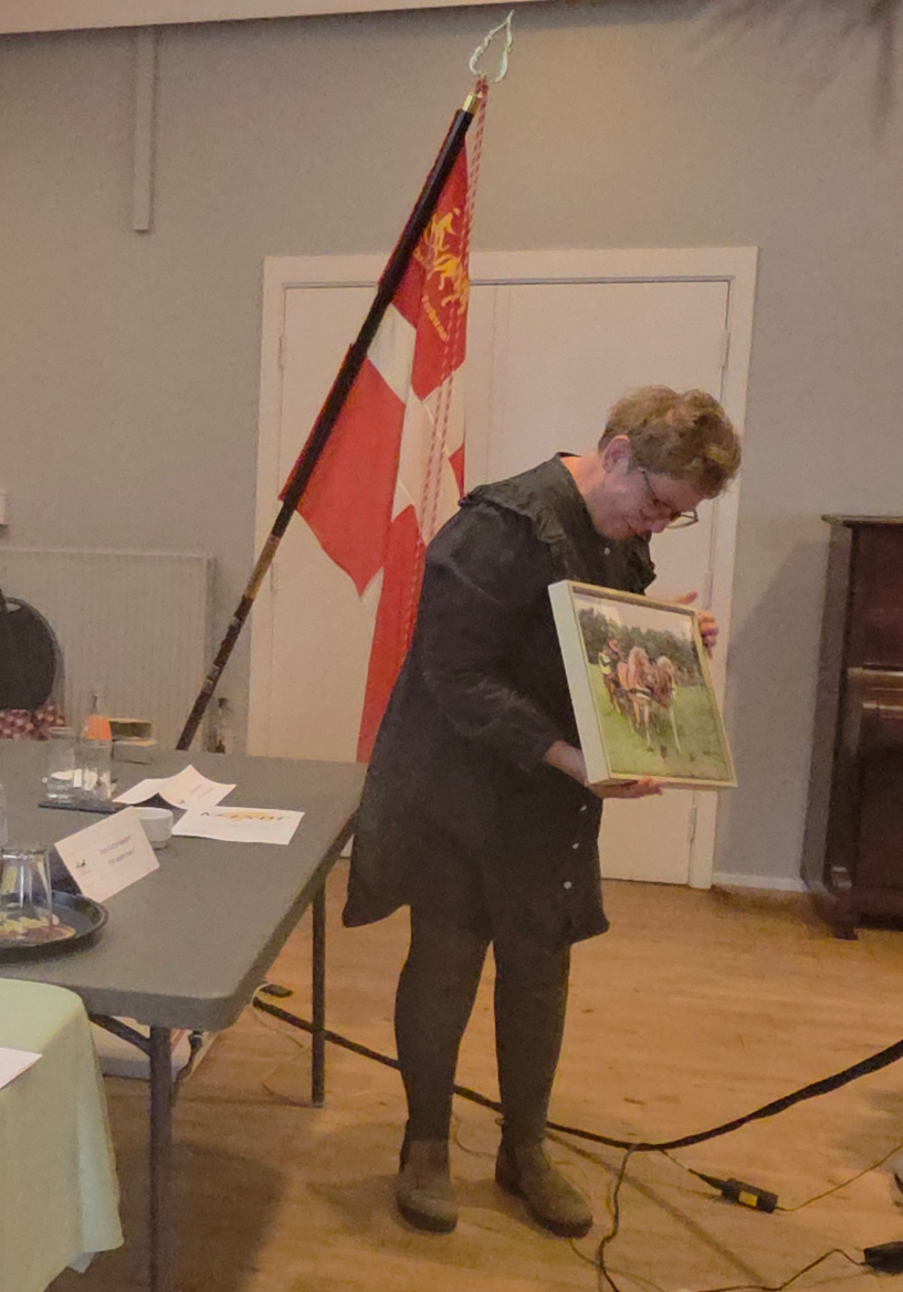 Efter en dejlig frokost, serveret af Hjallese Forsamlingshus, tog formanden ordet og takkede de mange ildsjæle, der deltager i hovedbestyrelsesmødet. "Faktisk er I alle ildsjæle," sagde han, inden han rettede en særlig tak til Anne Grethe Nørgaard. Anne Grethe, der ikke genopstiller til Dansk Køre Forbunds forretningsudvalg efter syv år – de seneste som næstformand – har været en uvurderlig støtte, især når det kom til det digitale arbejde. Det er blev nævnt, at der ofte har været lange telefonsamtaler, særligt mandag formiddag, hvor hun har været en stor hjælp. Som tak modtog hun et indrammet billede, taget af Mette Nørgaard.