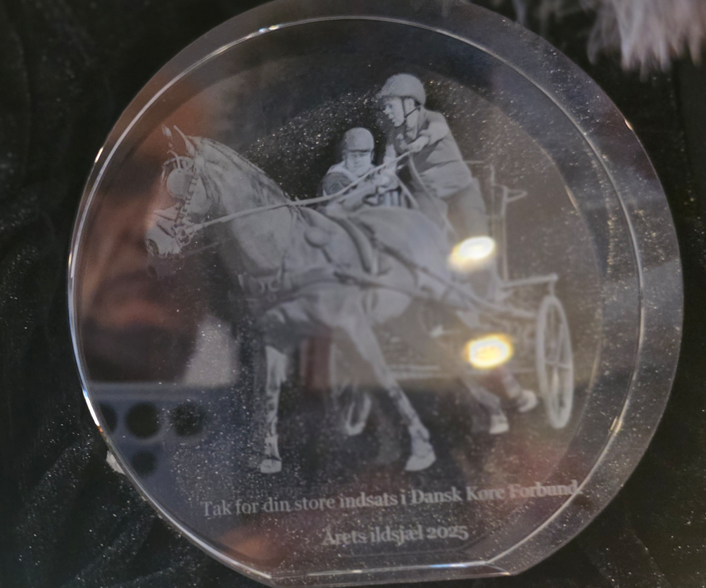 Anne Grethe fik også æren af at udnævne to ildsjæle: Susanne Bommelund fra Fyens Køre Selskab og Arnild Arp-Hansen fra Dansk Køre Selskab. Begge har valgt ikke at genopstille til køresportsudvalget, hvor de gennem årene har ydet en kæmpe indsats – Arnild som formand og Susanne som sekretær. Udover deres organisatoriske arbejde har de begge været aktive i sporten: Susanne som konkurrencekusk med deltagelse i flere internationale stævner, og Arnild som dommer, en rolle hun fortsat vil varetage. Som tak modtog de begge en glasfigur med et relief af dem selv til vogns.