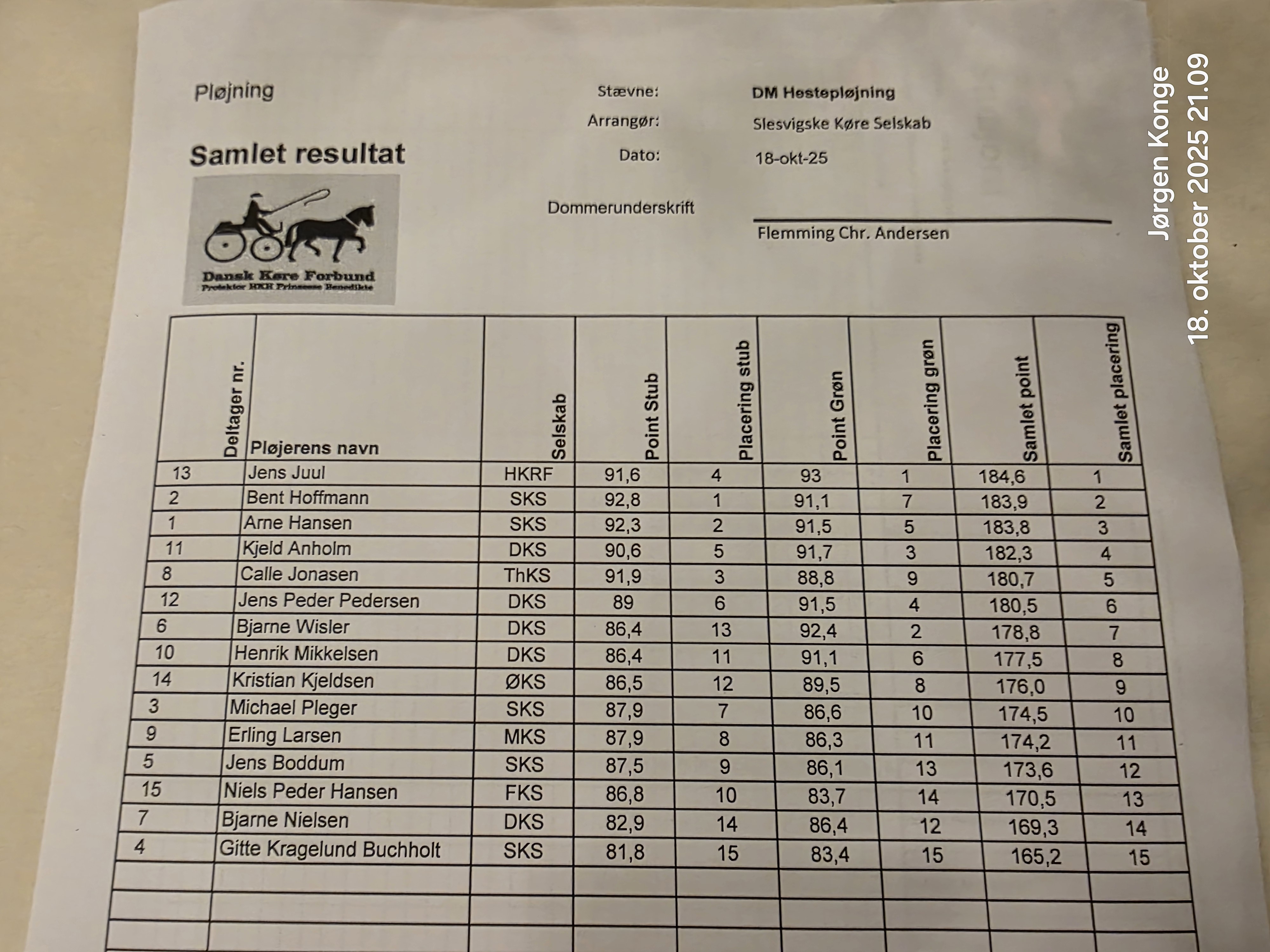 Danmarksmester i pløjning med heste 2025 Jens Juul, Himmerlands Køre- og Rideforening, sølv til Bent Hoffmann og bronze til Arne Hansen, begge Slesvigske Køre Selska.