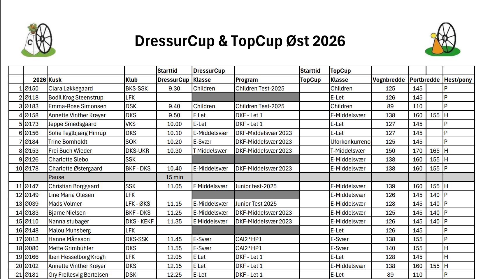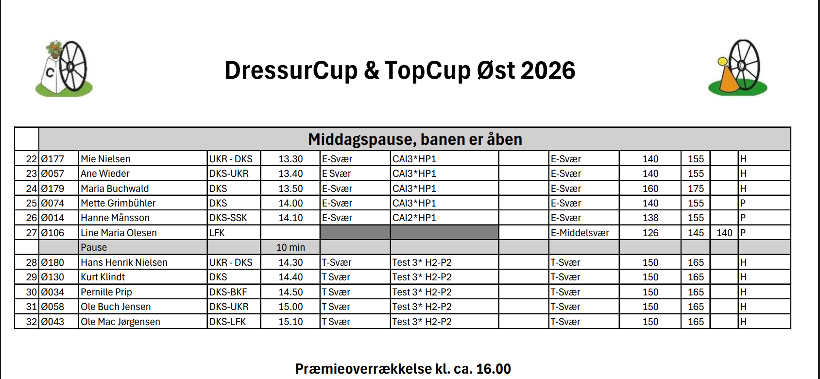 Startlister.
