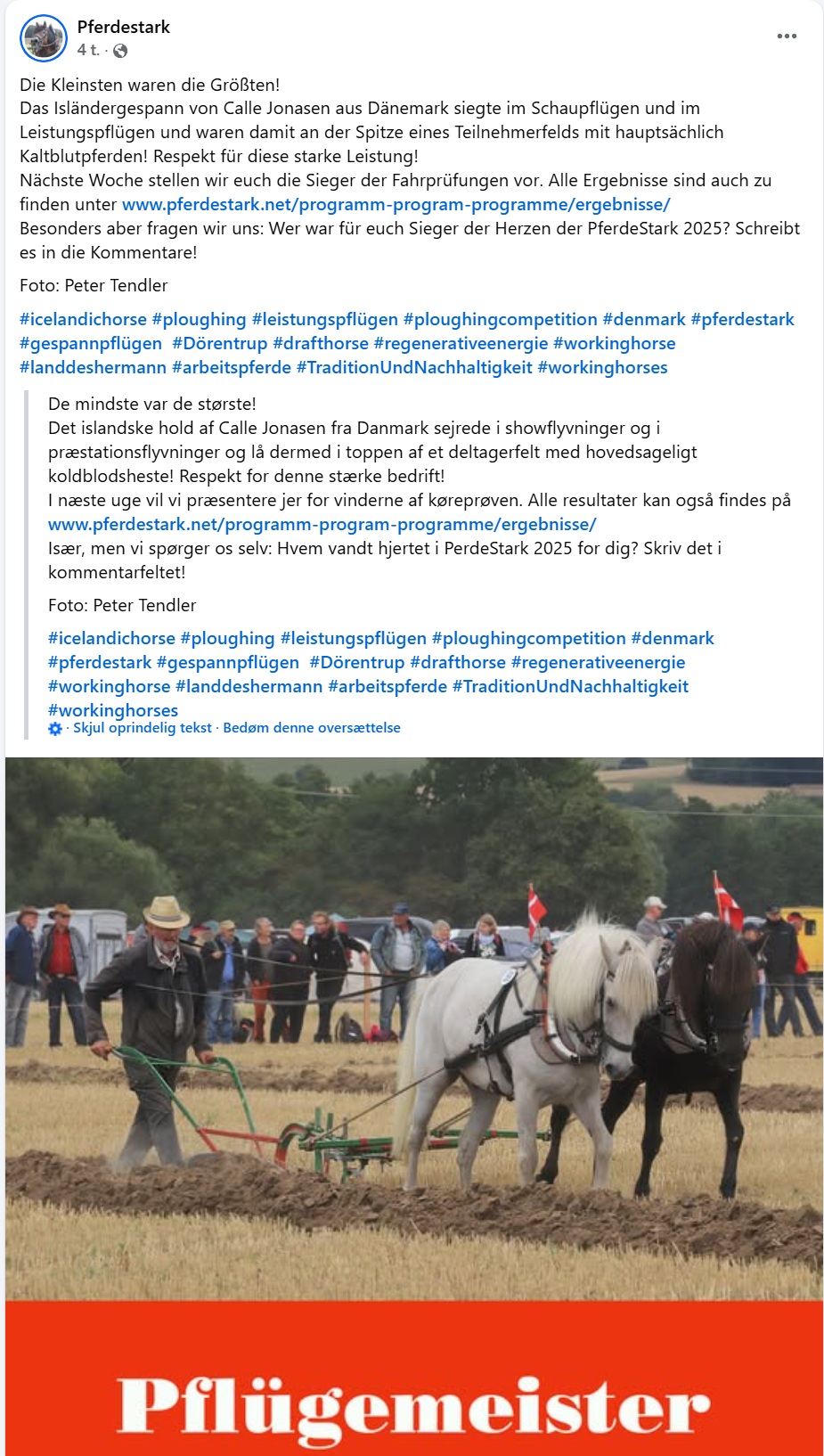 Og som om det ikke var nok, så deltog Calle også i søndagens showpløjekonkurrence – og vandt! Bent klarede sig også flot og tog en tredjeplads. Det er virkelig imponerende.
