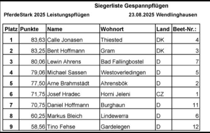 Resultat for EM i pløjning 2025 | Resultatet i en show pløjning til ære for publikum |