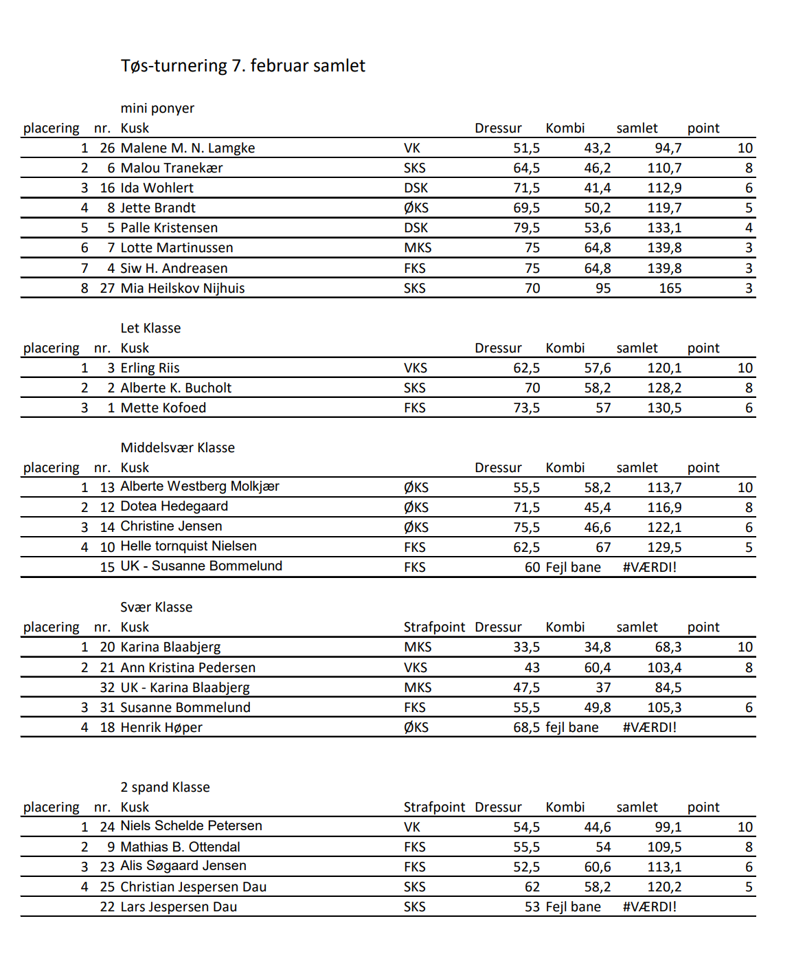 Resultatet af 3. afdeling af TØS tuneringen arrangeret af Fyens Køre Selskab i Asperup.