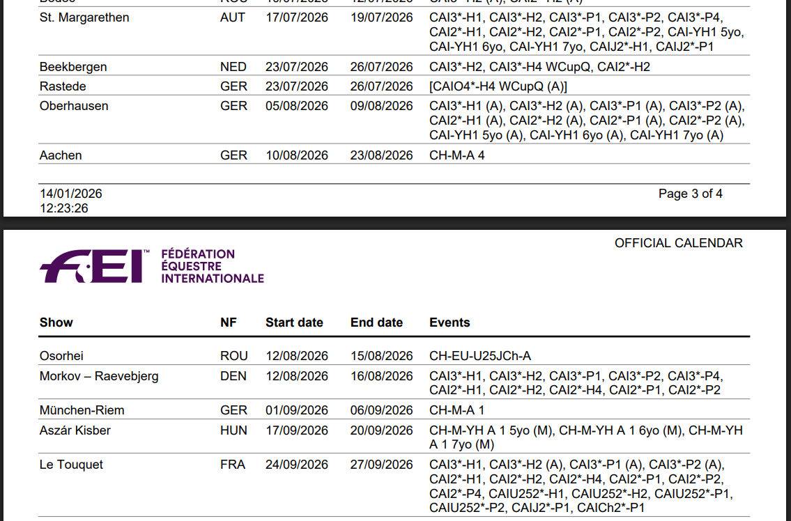 FEI's liste over Internationalestævner til efteråret 2026