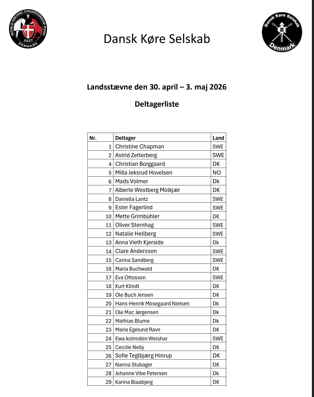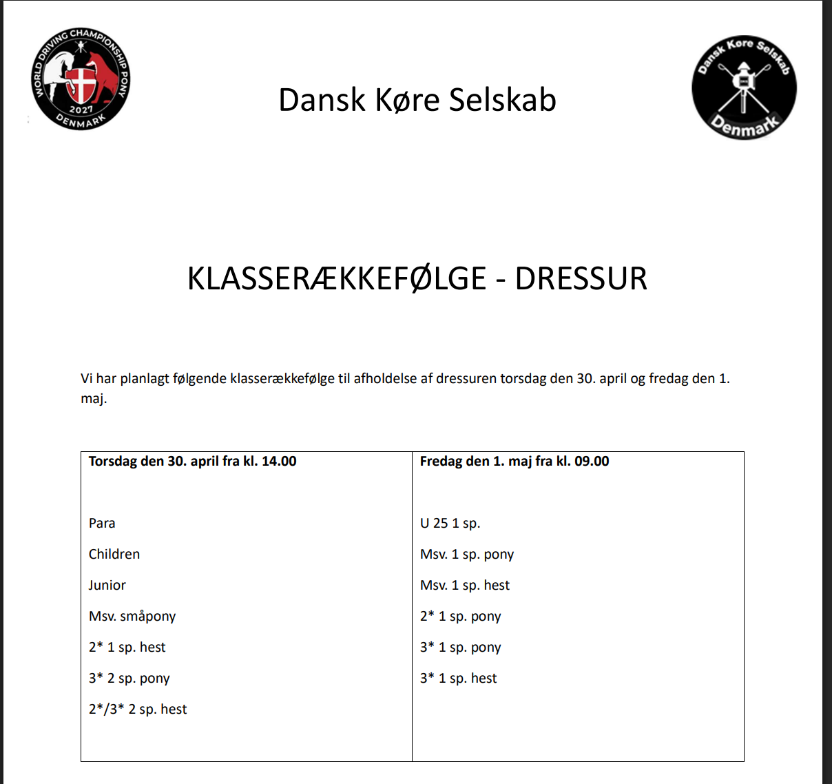 Torsdag den 30.april 2026 SE Forbehold kl. 14:00 – ca. kl. 16:00 Dressur