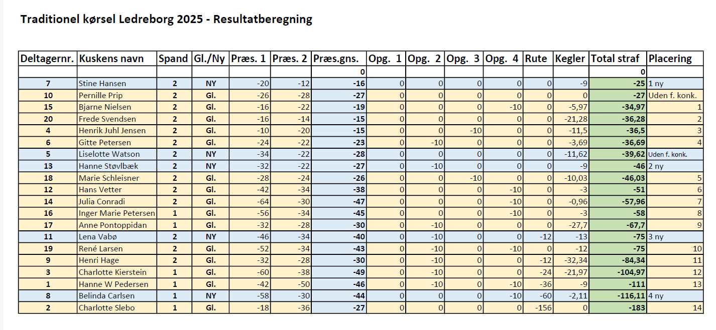 Resultatlisten læser jeg som, at de blå er vogne fra efter 1945, hvor vinder blev Stine Hansen, vinder af vogne før 1945 blev vinder Bjarne Nielsen. Og så er der 2 uden for konkurrence.