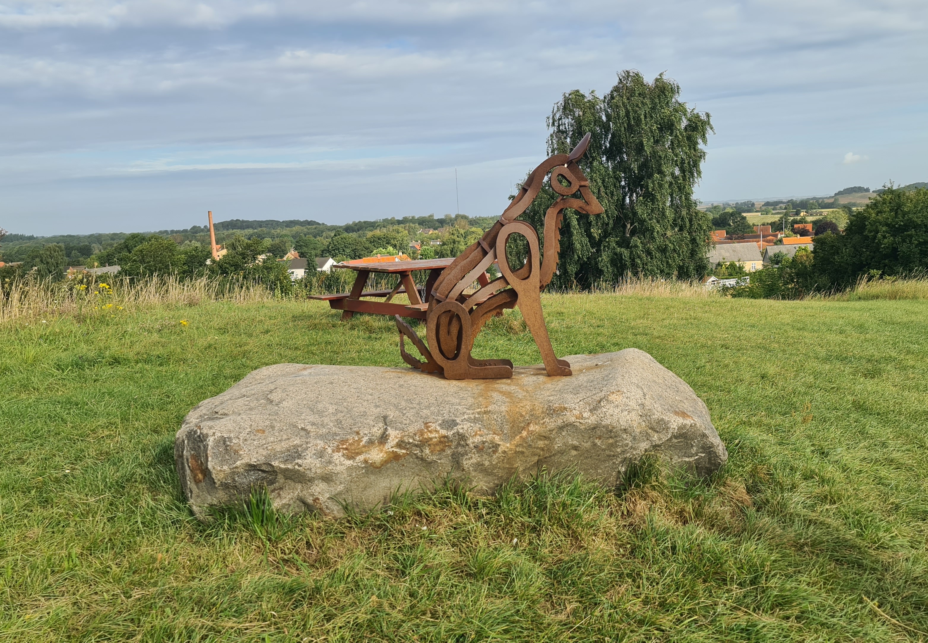 Øverst på "bjerget" har Marianne Seidenfaden lavet en ræv, der skuer ud over stævnepladsen.